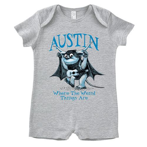 Welcome your baby to the weird world of Austin with this Austin Weird Things Onesie! Its comfortable design features a bold phrase declaring, "Where the Weird Things Are" paired with the city name. Perfect for Proud Austinites!
