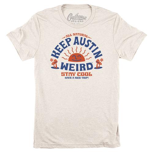 Austinites know that keeping it weird is the key to staying cool. This unique Stay Cool Tee features all the classic Austin slogans, from "Keep Austin Weird" to "Have a Nice Trip". Show off your Austin pride in the most trippy way possible!